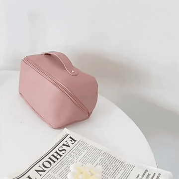 The wide steel-framed opening gives structure and stability to the bag, allowing it to stand upright and remain open while you search for your beauty must-haves. No tipping, no hassle—just grab and go.