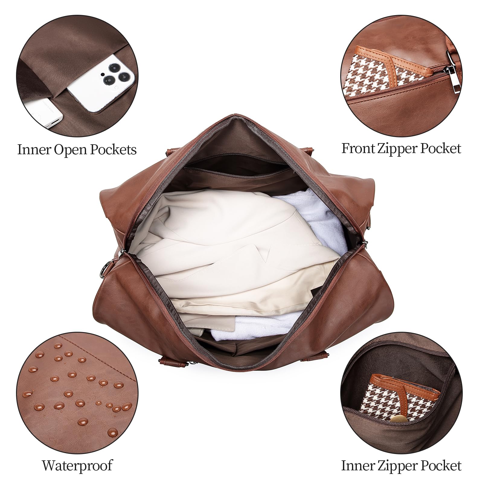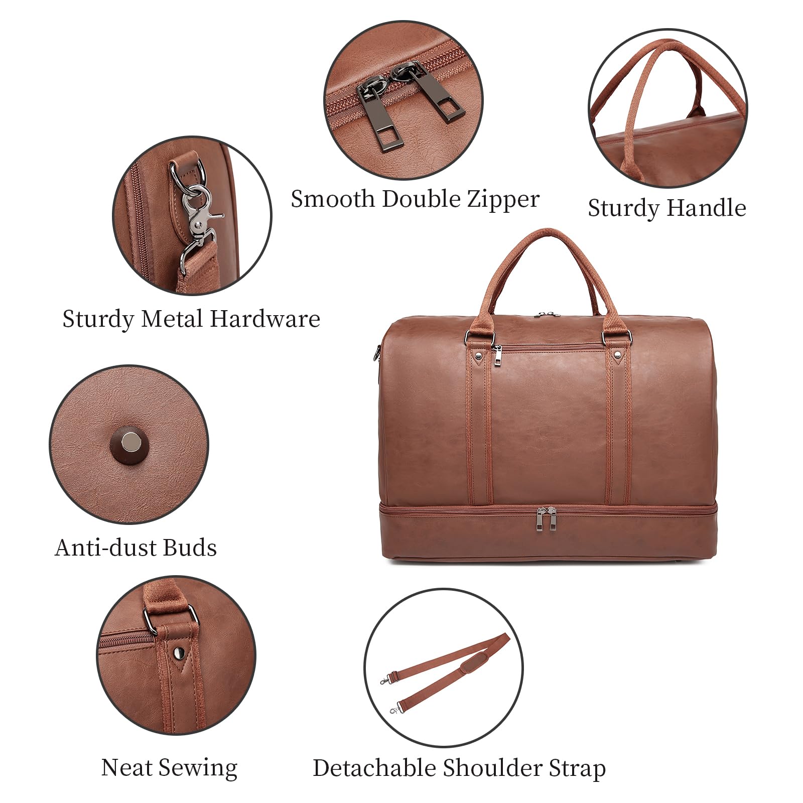 Experience effortless packing and ultimate versatility with the JetSet Leather Duffel, the perfect oversized weekender bag for both men and women. Designed with a modern traveler in mind, this stylish brown PU leather duffel bag combines form and function, making it your go-to companion for weekend getaways, business trips, gym sessions, or hospital visits.