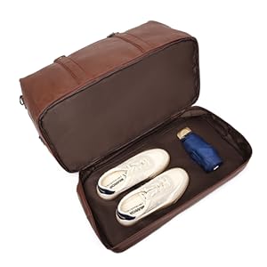 JetSet Leather Duffel - Oversized Brown Weekender with Shoe Compartment